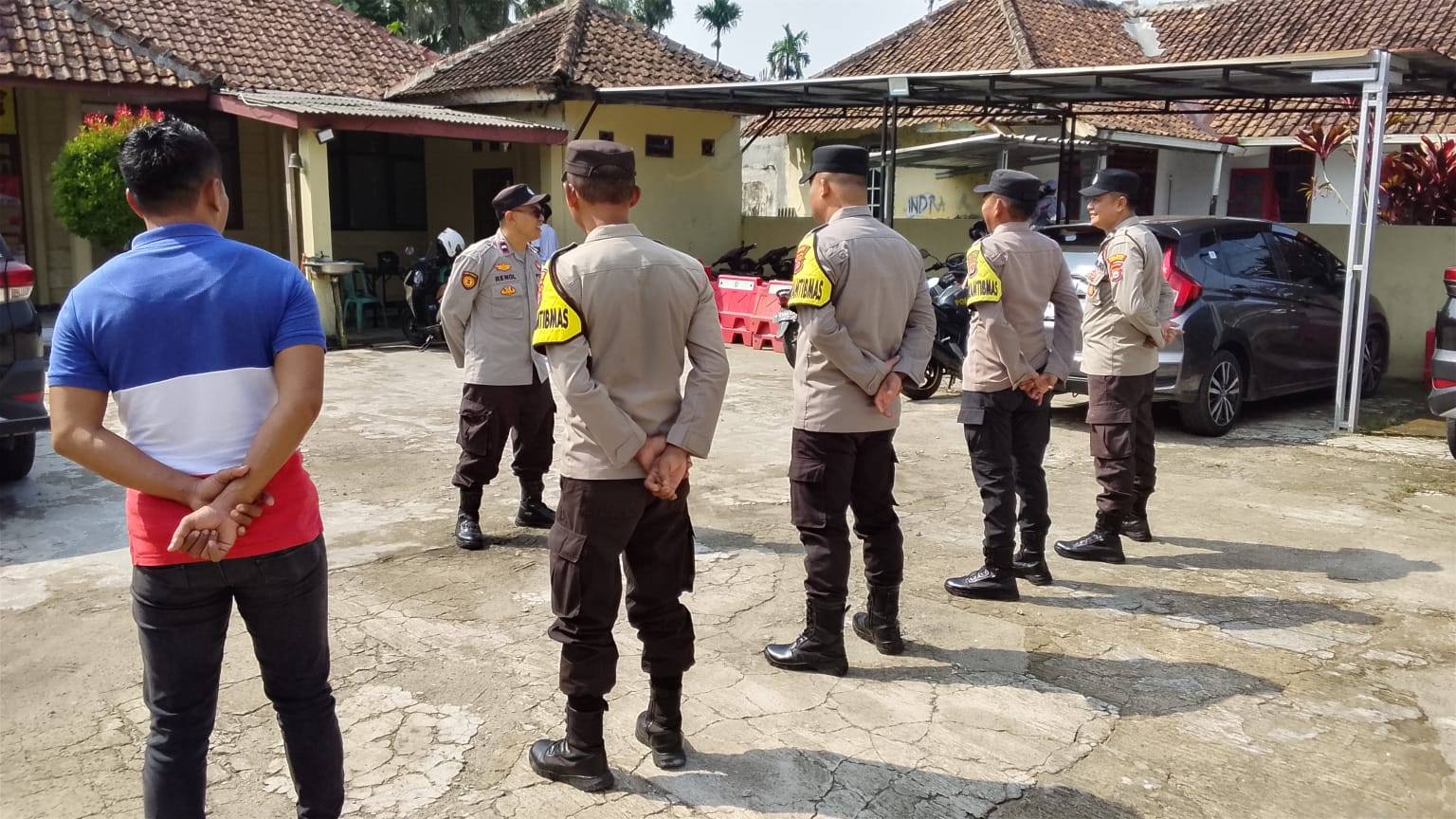 Pimpin Apel Pagi Oleh Piket Pawas PS. Kanit Kanit Samapta Dan Memberikan Arahan Kepada Anggota Polsek Petir Polres Serang Didepan Mako